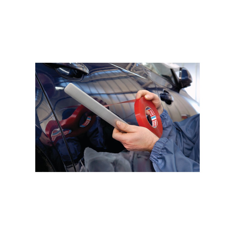 tesa® 4965 je transparentní oboustranná samolepící páska s PET nosičem a modifikovaným akrylátovým lepidlem.