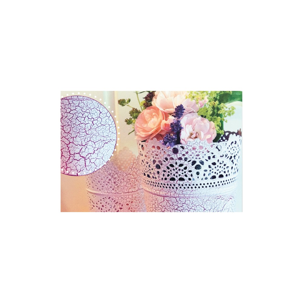 DUPLI COLOR Crackle efect je barva ve spreji vytvářející dvoubarevný "popraskaný" efekt. Snadno s ní vytvořéte působivý starožitný vzhled. Díky nepřebernému množství podkladových akrylových nebo nitrokombinačních barev jsou možnosti efektních kombinací téměr neomezené. Jakmile na předem nastříkaný povrch nanasete krakelovací lak, můžete ihned pozorovat, jak se na povrchu začínají vytvářet "praskliny".