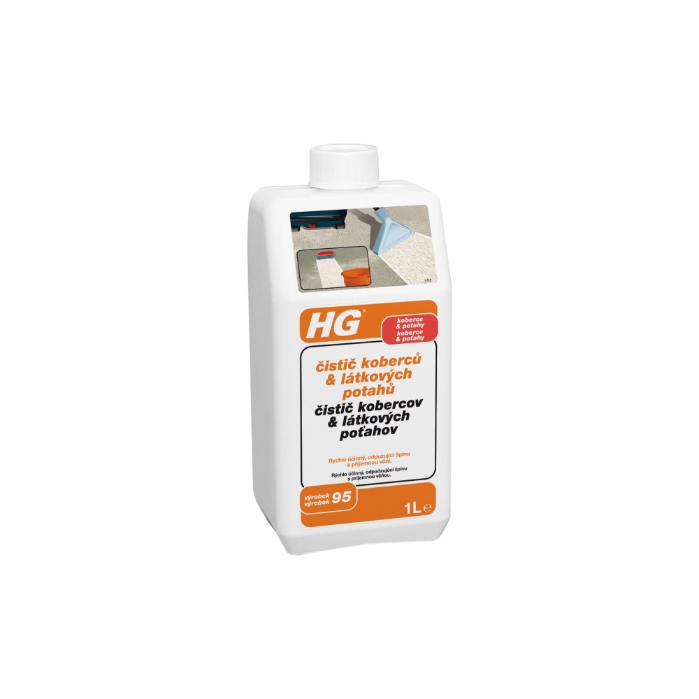Chodením sa poškodzujú vlákna syntetických kobercov a podlahových kobercov a tým sa rýchlejšie znecištujú. Pomocou HG čistič kobercov a látkových poťahov (HG výrobok 95) sa odstráni necistota a drsný povrch vlákien sa opraví vrstvou odolnou voči špine. Ani pri vlnených kobercoch sa trvalo nedá zabrániť týmto poškodeniam. Pomaly, ale iste zmizne prírodný lanolín. HG čistič kobercov a látkových poťahov (HG výrobok 95) poskytuje vášmu vzácnemu (podlahovému) kobercu novú ochranu vďaka vrstve odolnej voči špine. Najskôr ošetrite škvrny prostriedkom HG cistic škvŕn v spreji. Potom špeciálnym strojom nastriekajte HG čistič kobercov a látkových poťahov (HG výrobok 95) a rovno vysajte alebo vykefujte. Vysušte froté uterákom. 1 liter stačí na plochu 30 m2.