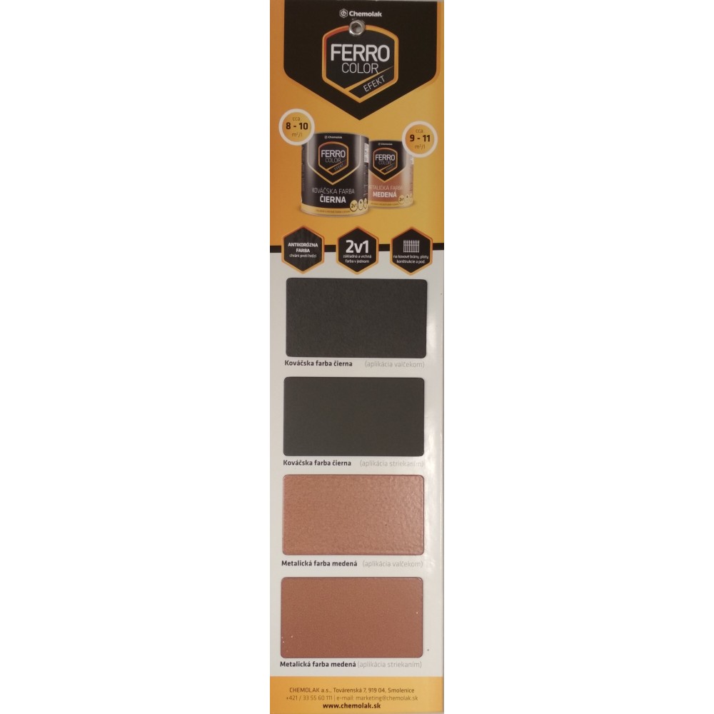 - 2 až 3 krát FERRO COLOR kováčska U 2066 40 – 50 µm v jednej vrstve, interval pre ďalší náter 6 – 7 hod. (23°C/50%)