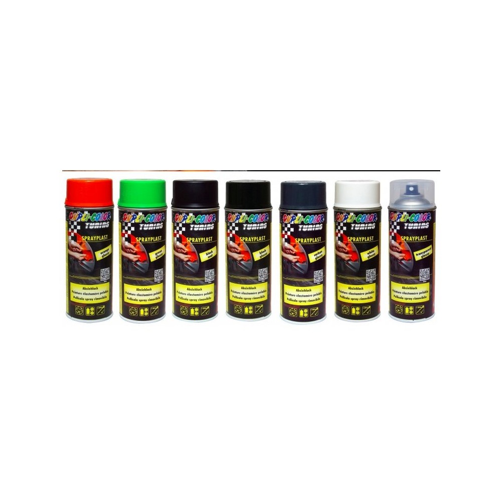 Popis Špeciálny lak na vytvorenie zlúpnuteľného tenkého filmu. Použiteľný na hladké, nesavé povrchy, napríklad kov, hliník, tvrdé plasty, sklo. Trhliny vo filme sú ľahko opraviteľné prestriekaním sprejom SprayPlast. Ide o špeciálnu farbu s vysokou elasticitou, ktorú je možné kedykoľvek bez zvyškov odstrániť. Odoláva teplotám, vplyvom počasia, soliam a treniu, preto nie je problém ani umývanie v umývačkách alebo vysokotlakovým čističom.