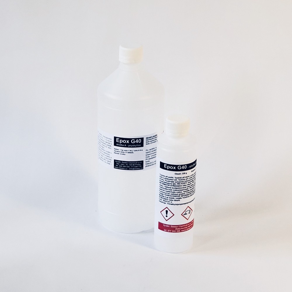 Epox G40 je transparentní epoxidový licí systém s prodlouženou dobou zpracování. Lze jej odlévat i v silných vrstvách, řádově centimetry (max 4 cm). Vyznačuje se dlouhou dobou zpracování a pomalým vytvrzováním, zajišťujícím nízké teploty při vytvrzování. Vhodná pro zalévání a vytváření dekoračních předmětů, 3D efektů, odznaků, světelných těles, zalévání a lepení šperků apod. Velmi tekutý a dobře zabíhavý systém. Lze použít i pro výrobu forem, modelů, a také pro pevnostní lepení a spojování (kovy, sklo, beton, guma, dřevo apod). Vhodná pro přípravu laminátů, a pro použití v elektronickém a elektrotechnickém průmyslu. Po vytvrzení transparentní, lze dodat i pigmentovaný.