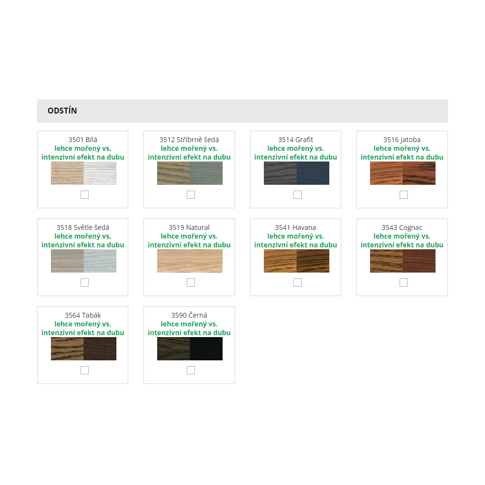 Olejovové mořidlo vzorník