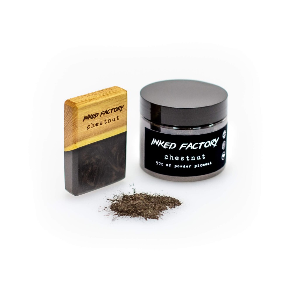 INKED FACTORY chestnut je slídový pigment nejvyšší kvality, který je vhodný jak pro profesionální použití, tak pro domácí kutily. Nejčastěji je používán k probarvení epoxidových pryskyřic, své využití má i při 3D tisku z pryskyřice, u autolaků, plastidipu, při výrobě svíček, mýdel, koupelových bomb, slizů a mnoho dalšího. Vhodný je zejména pro materiály s čirou bází.