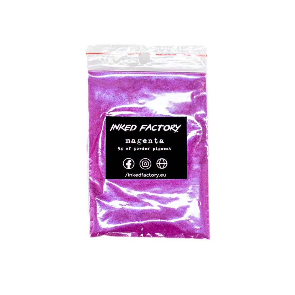 INKED FACTORY Magenta je slídový pigment nejvyšší kvality, který je vhodný jak pro profesionální použití, tak pro domácí kutily. Nejčastěji je používán k probarvení epoxidových pryskyřic, své využití má i při 3D tisku z pryskyřice, u autolaků, plastidipu, při výrobě svíček, mýdel, koupelových bomb, slizů a mnoho dalšího. Vhodný je zejména pro materiály s čirou bází.