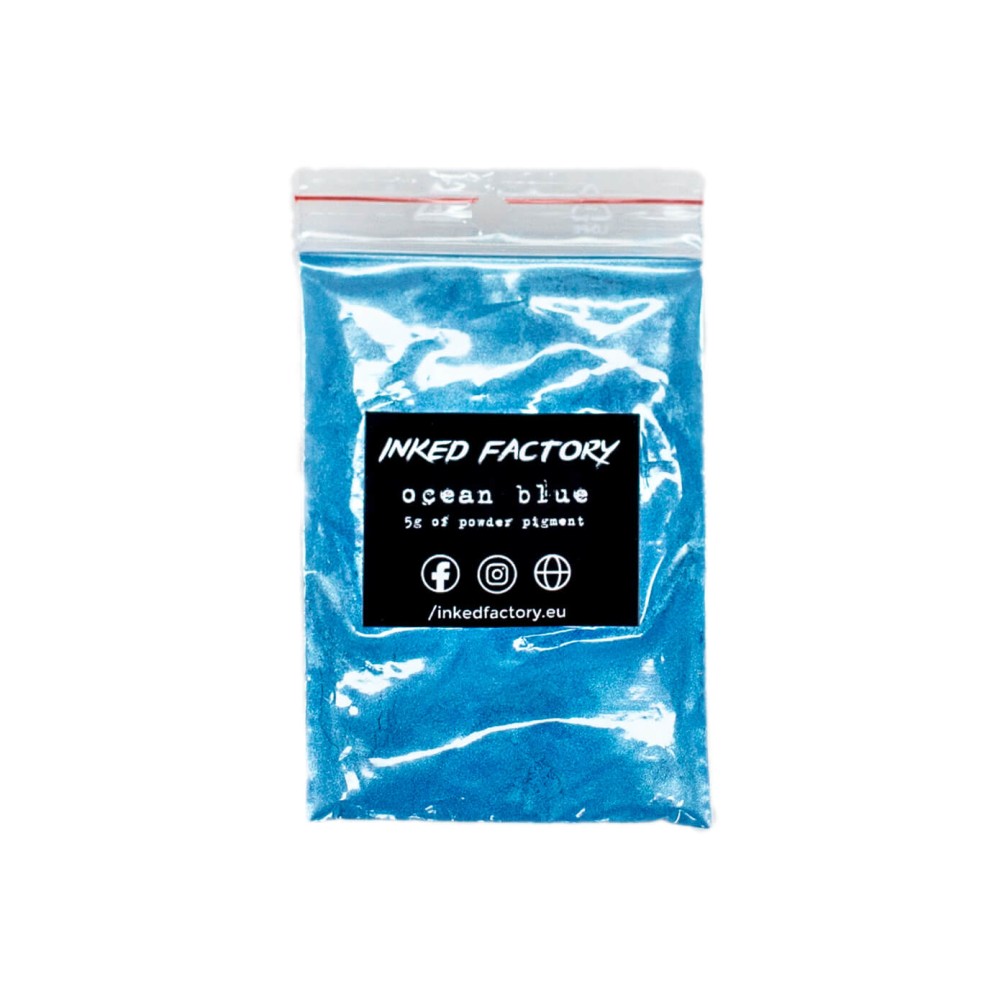 INKED FACTORY ocean blue je slídový pigment nejvyšší kvality, který je vhodný jak pro profesionální použití, tak pro domácí kutily. Nejčastěji je používán k probarvení epoxidových pryskyřic, své využití má i při 3D tisku z pryskyřice, u autolaků, plastidipu, při výrobě svíček, mýdel, koupelových bomb, slizů a mnoho dalšího. Vhodný je zejména pro materiály s čirou bází.