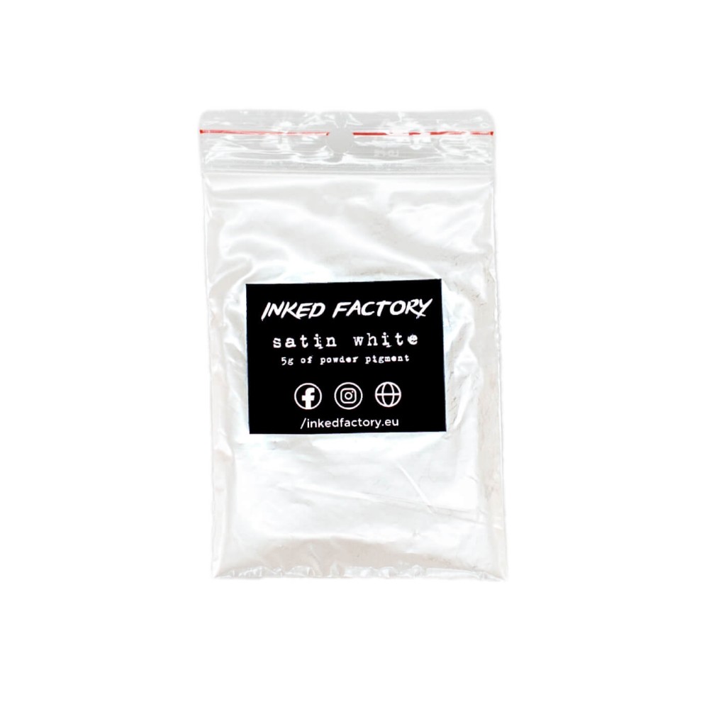 INKED FACTORY Satin White je slídový pigment nejvyšší kvality, který je vhodný jak pro profesionální použití, tak pro domácí kutily. Nejčastěji je používán k probarvení epoxidových pryskyřic, své využití má i při 3D tisku z pryskyřice, u autolaků, plastidipu, při výrobě svíček, mýdel, koupelových bomb, slizů a mnoho dalšího. Vhodný je zejména pro materiály s čirou bází.