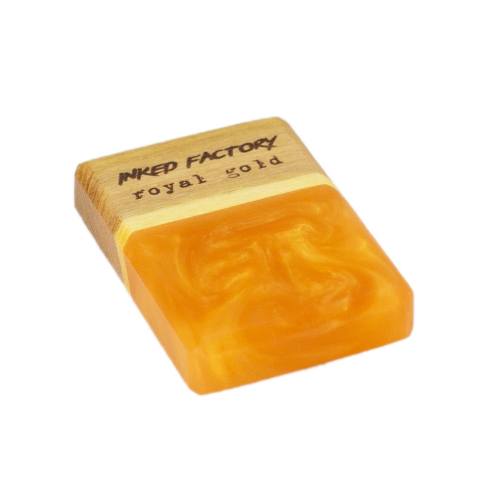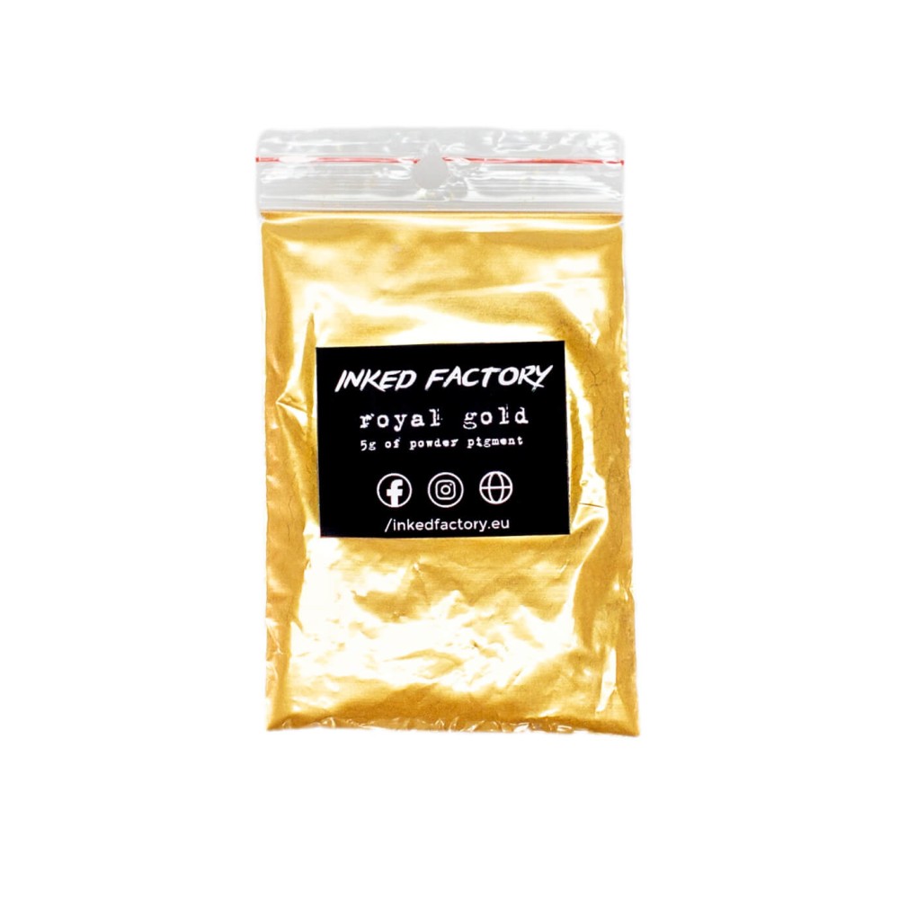 INKED FACTORY Royal gold je slídový pigment nejvyšší kvality, který je vhodný jak pro profesionální použití, tak pro domácí kutily. Nejčastěji je používán k probarvení epoxidových pryskyřic, své využití má i při 3D tisku z pryskyřice, u autolaků, plastidipu, při výrobě svíček, mýdel, koupelových bomb, slizů a mnoho dalšího. Vhodný je zejména pro materiály s čirou bází.
