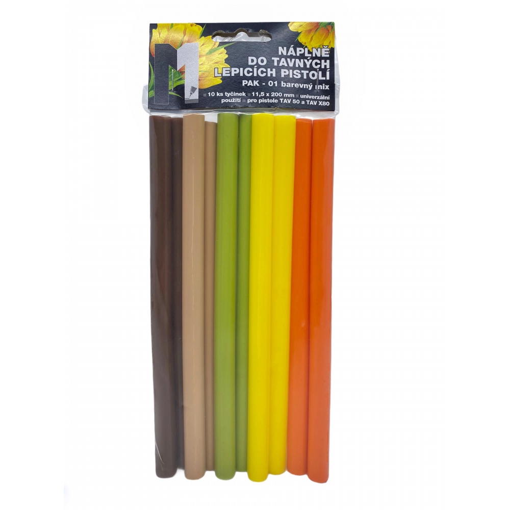 Tavné lepidlo PAK 01 tyčinky 11x200mm 10ks barevný mix JARO