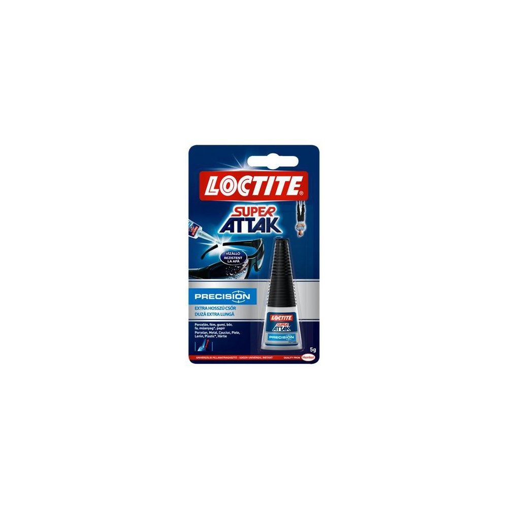 Loctite Super Attak Precision je jednosložkové kyanoakrylátové lepidlo střední viskozity navržené pro použití v domácnosti a silně spojuje široké spektrum porézních a neporézních materiálů.